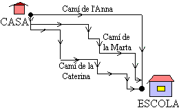 | 1. | L'Anna i la seva germana Marta van cada dia caminant a la mateixa escola, però per camins diferents. Quin camí és el més llarg? | ![]() |