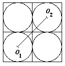 | 8. | Calculeu la longitud del segment sabent que el costat del quadrat gran val 2a i O1 i O2 són els centres de les circumferències.