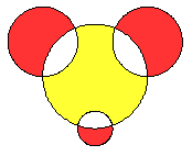 | 15. | Designem amb v l'àrea de la regió acolorida de color vermell i amb w l'àrea de la regió de color groc. Els diàmetres dels cercles són 6, 4, 4 i 2. Es pot assegurar: | ![]() |