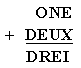 | 24. | En la suma de la dreta, que han plantejat unes amigues de la Unió Europea (una anglesa, una francesa i una alemanya), cada lletra representa una xifra, amb el benentès que lletres iguals corresponen a xifres iguals i lletres diferents a xifres diferents i que, a més, sabem que no hi apareix el 0 (zero). Quin és el valor més gran que pot tenir DREI? | ![]() |