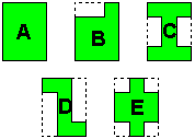 | 16. | Cinc veïns tenen jardins iguals, de forma rectangular, però cadascun dedica una zona diferent a plantar-hi flors (zona acolorida) i hi posa una tanca. Quin dels veïns necessita una tanca més llarga? | ![]() |