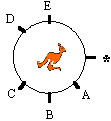 | 20. | El nas del Cangur apunta al punt *. Si el Cangur gira, sobre ell mateix, 630o en el sentit de les agulles del rellotge, cap on apuntarà aleshores el seu nas? | ![]() |