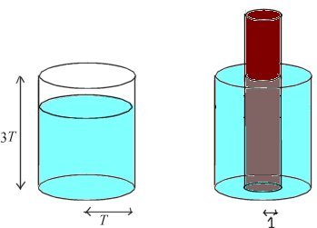 Un recipient cilíndric de radi T