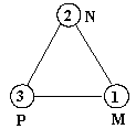 Els nombres 1, 2 i 3 estan situats als vèrtexs d'un triangle. Es van fent canvis en els valors dels nombres situats en els vèrtexs M, N, P seguint aquesta regla: