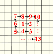 Es situen els nombres enters positius en un engraellat tal com mostra l'esquema següent: Quin nombre quedarà situat a la casella situada immediatament a la dreta de la que ocupa el nombre F que us han passat? Recordeu que F és el resultat de multiplicar per 10 el resultat del problema anterior. Ja heu acabat! |