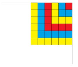 vermell, blau i groc, situades d'acord amb la distribució que es mostra