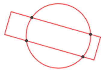 Podeu veure un rectangle i una circumferència que tenen quatre punts en comú.