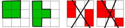 maneres diferents un polígon pintant de color verd 4 quadradets de la quadrícula. El