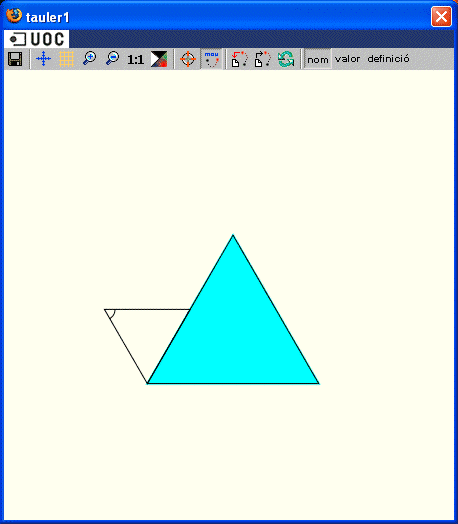 Fem rodar el triangle petit al voltant d'un dels vèrtexs que està sobre el triangle gran fins que un nou costat es recolza sobre un costat del gran; i aquesta acció l'anem fent successivament, sempre en el mateix sentit de rotació, tal com es mostra a l'animació següent: